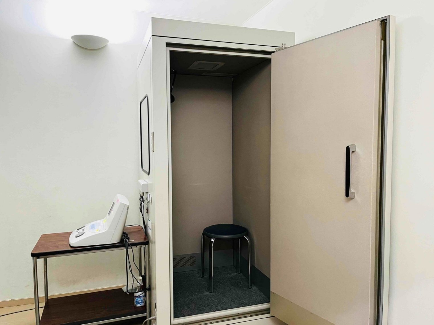 防音室で正確な聞こえの検査を行います。