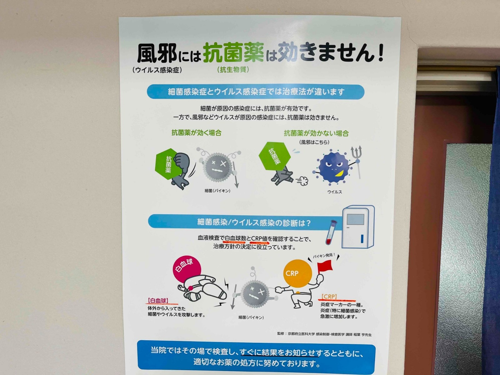 風邪(ウイルス性)と細菌感染では治療法が違います。